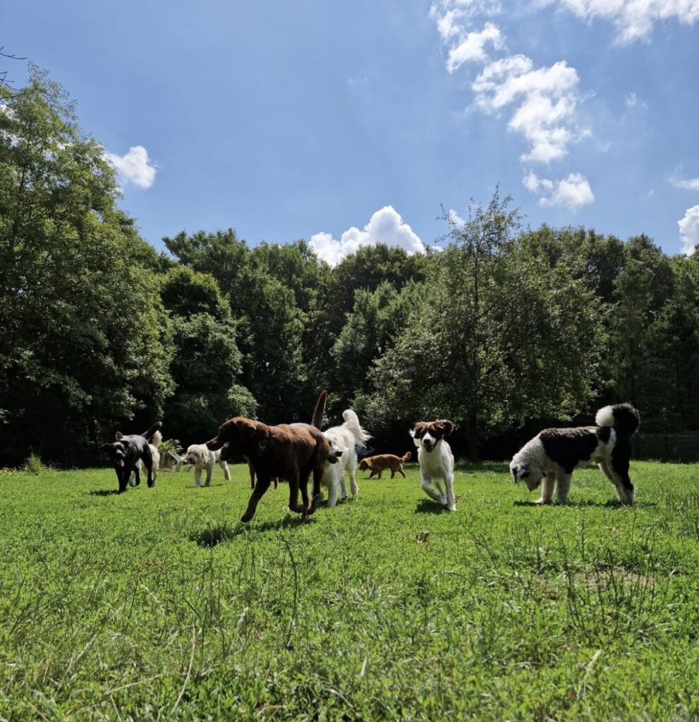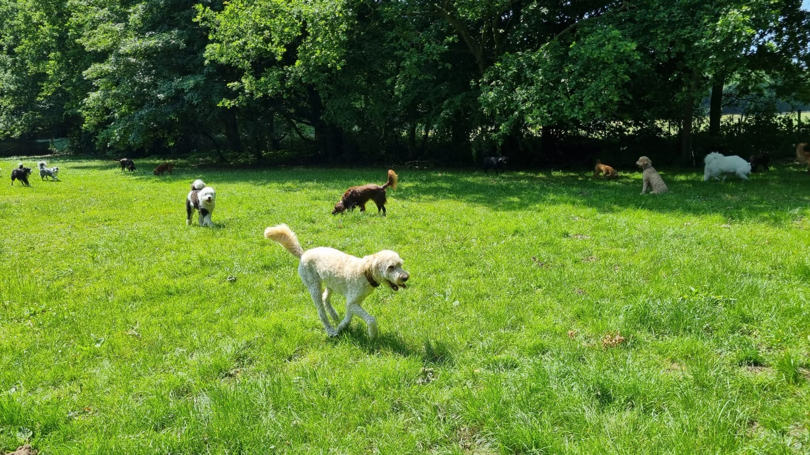 Heerlijk spelen, snuffelen en rennen met soortgenoten onder deskundige begeleiding op een veilig omheind hondenspeelterrein van maar liefst 5000m2?