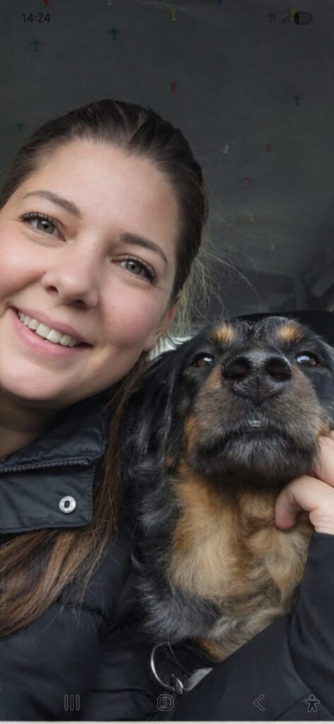 Daphne werkt sinds begin 2026 bij de uitlaatservice en voelt zich erg op haar plek tussen de honden. Ze is opgegroeid met honden en paarden en weet hoe belangrijk duidelijkheid, structuur en rust zijn voor dieren. Het werken met honden geeft haar energie.